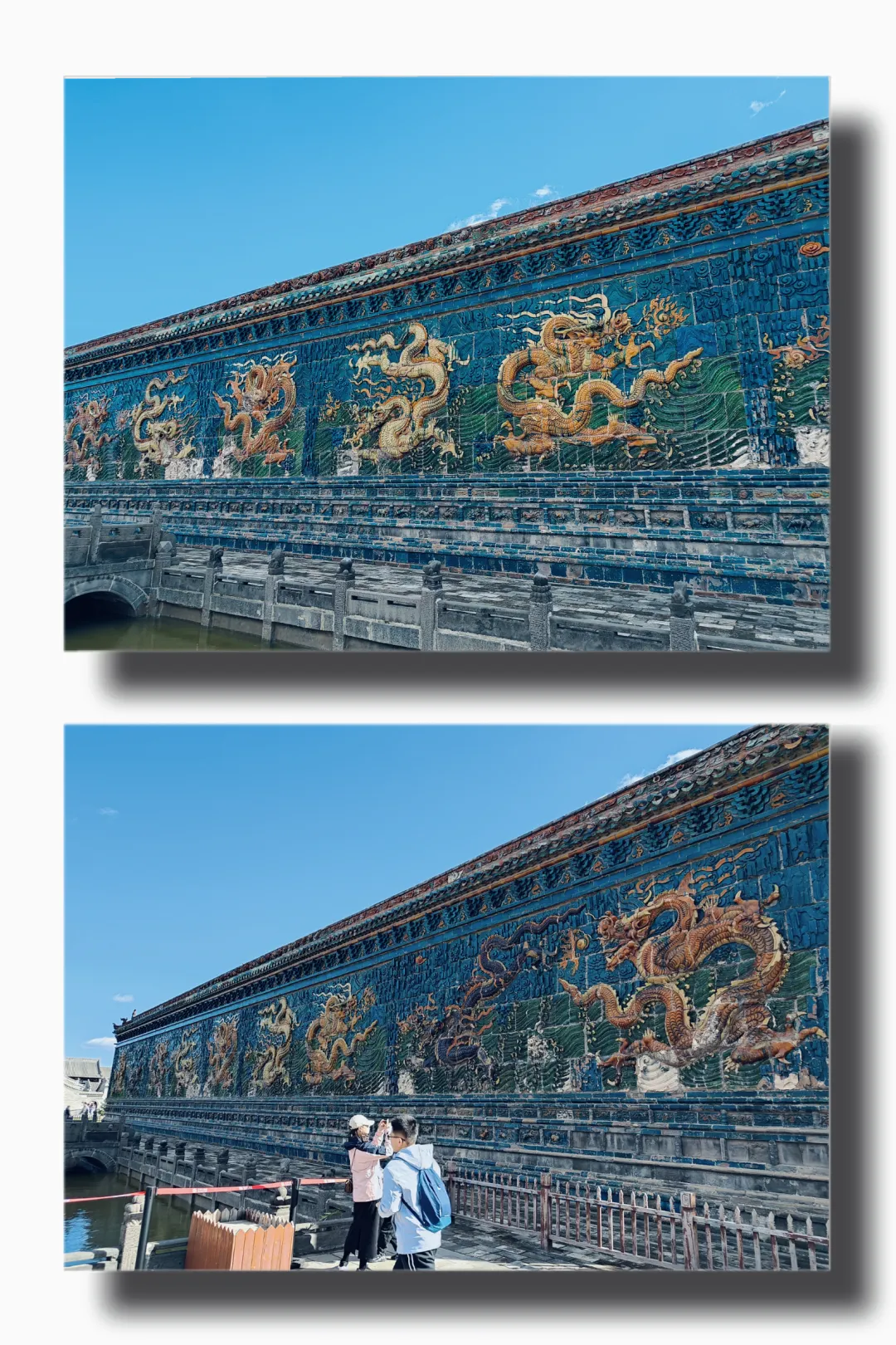 之前也去过一些古城,知道主城门外,都会有一个拱卫主城门的小城,也就是瓮城,一旦敌人攻入瓮城,守军就可以把主城门和瓮城门一关,对敌人来个“瓮中捉鳖”,进行打击。这次来大同,我可又开了眼界,大同古城竟然有两个瓮城呢!走出第一道瓮城的门,又见一道形如弯月的瓮城,也叫月城,两个瓮城里面都很开阔,里面还有一座庙宇。从月城走出去,最外一道防线——护城河映入眼帘。