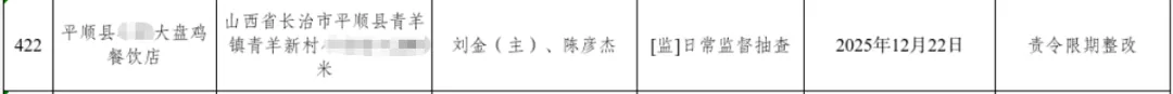 >长治一大盘鸡餐饮店被查住!结果公示!