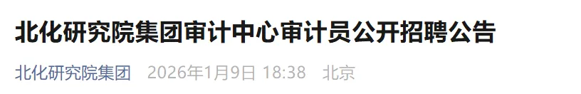 为进一步深化北化研究院集团内部审计体制改革,打造高素质专业化审计人才队伍,持续推动北化研究院集团审计工作提质增效、高质量发展,北化研究院集团审计中心面向社会进行公开招聘。