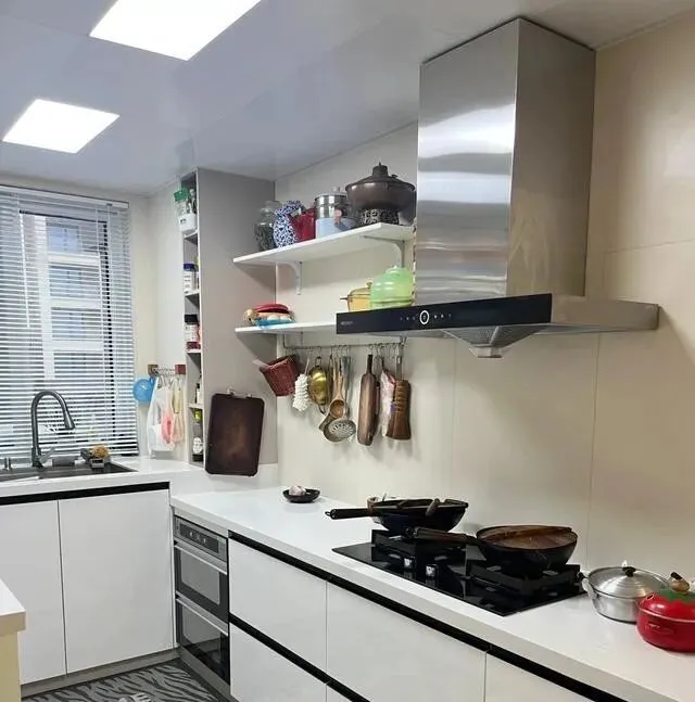厨房不大 , 但该有的都有 , 动线也顺 , 做饭肯定不憋屈。