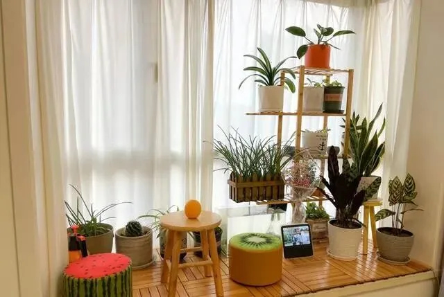 绿植摆了好几盆 , 整个空间瞬间就活了。