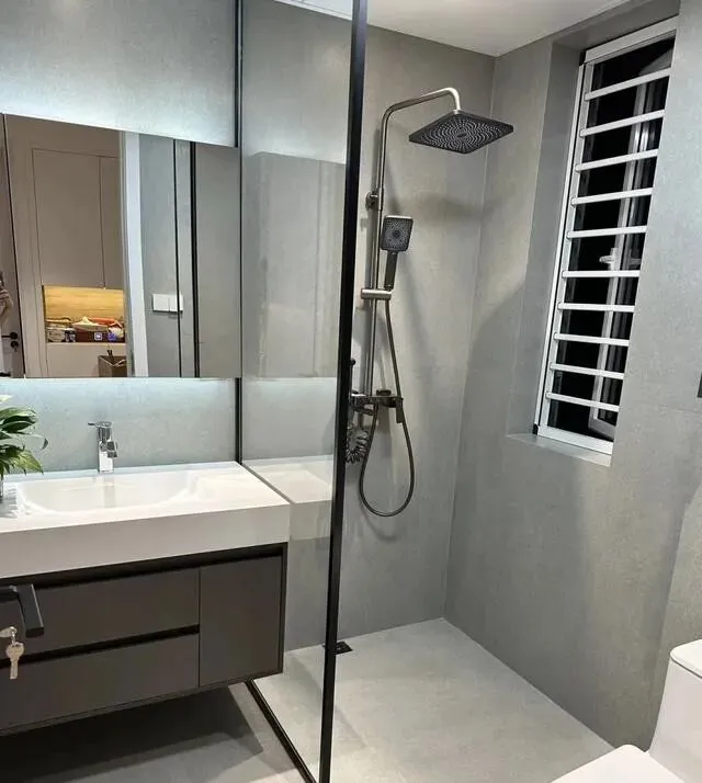 淋浴区用了透明玻璃隔断 , 视觉上显大。
