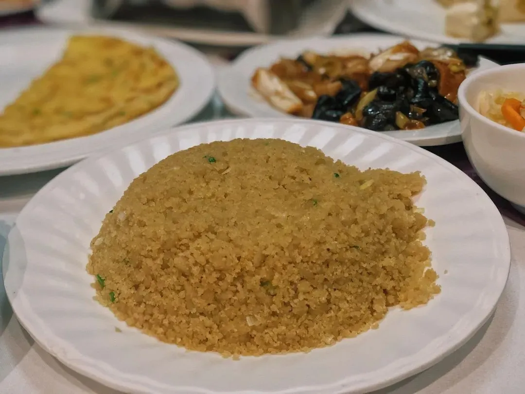 ”是西贝莜面村的招牌菜之一,在大同吃到的版本,更是曾经沧海。家常菜馆的黄米凉糕,层次分明:下层是洁白莹润的糯米,上层是金黄灿烂的黄米,中间还夹了一点儿葡萄干丰富味觉体验,糯糯叽叽,十分弹牙,再淋上一勺浅黄晶莹的桂花酱,口感冰凉清甜,幽香沁人心脾,是一口迷人的秋天味道。