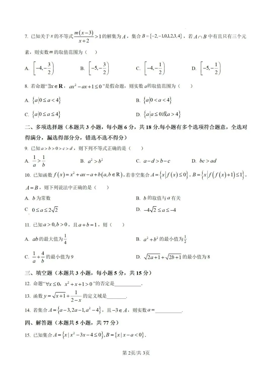 山西省太原市四校2025-2026学年高一上学期10月联考数学试卷(原卷版)