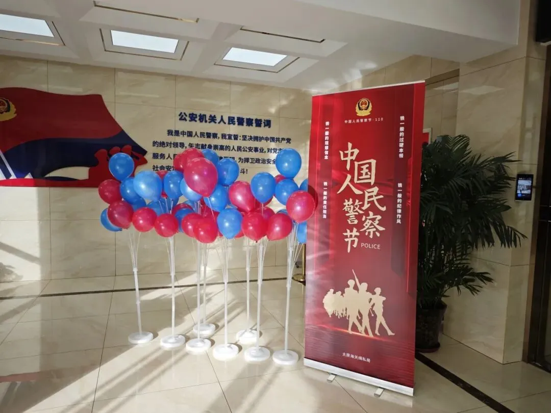 精心布置机关办公区域,营造出庄重热烈的节日氛围。熠熠生辉的警旗高悬于醒目位置,彰显着缉私警察的忠诚底色与使命担当;缤纷的红蓝气球错落点缀,将藏蓝风采与节日喜悦巧妙融合;主题鲜明的宣传海报整齐张贴,生动展现了缉私队伍护航国门安全、守护万家安宁的奋进姿态。浓厚的节日氛围,进一步激发了全体民警辅警的职业荣誉感、归属感与责任感,凝聚起踔厉奋发、勇毅前行的磅礴力量。