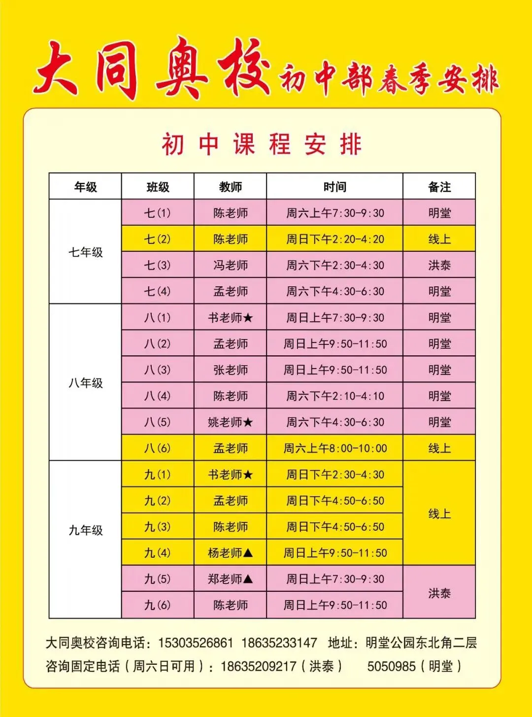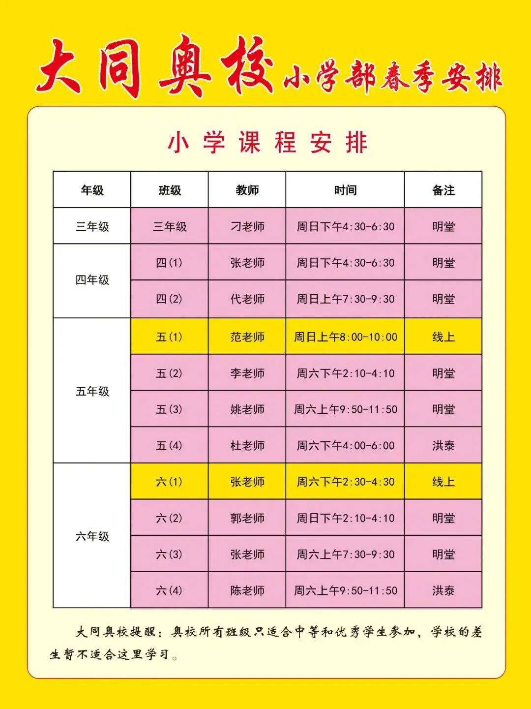 >大同奥校2026年寒假和春季安排