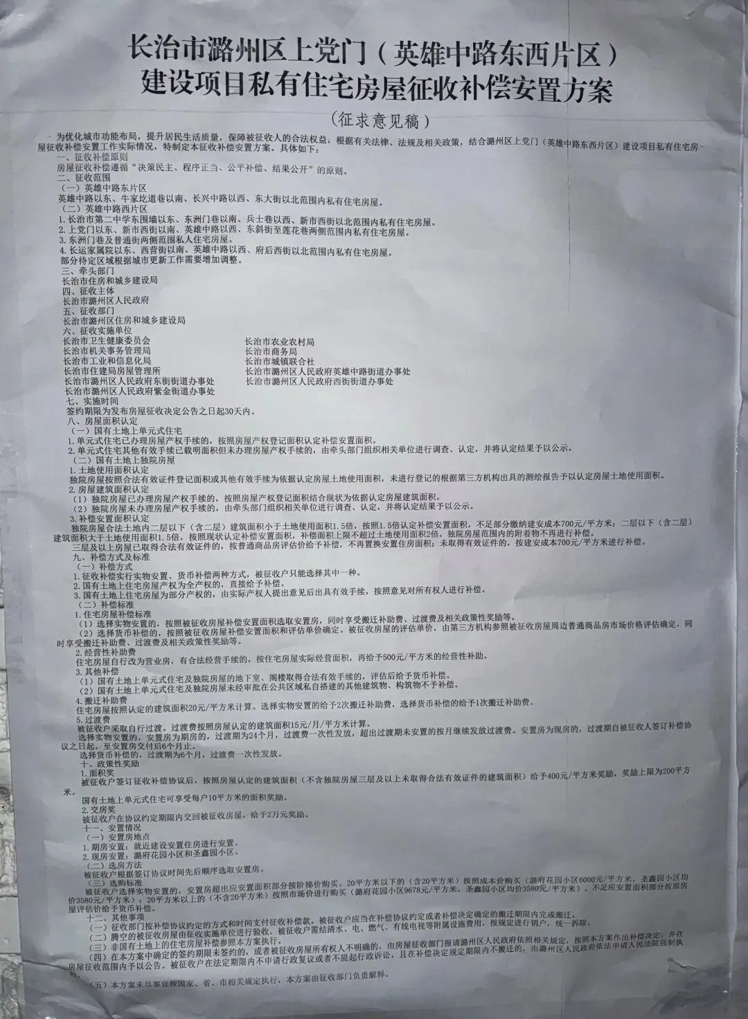 私有住宅房屋征收补偿安置方案(征求意见稿)