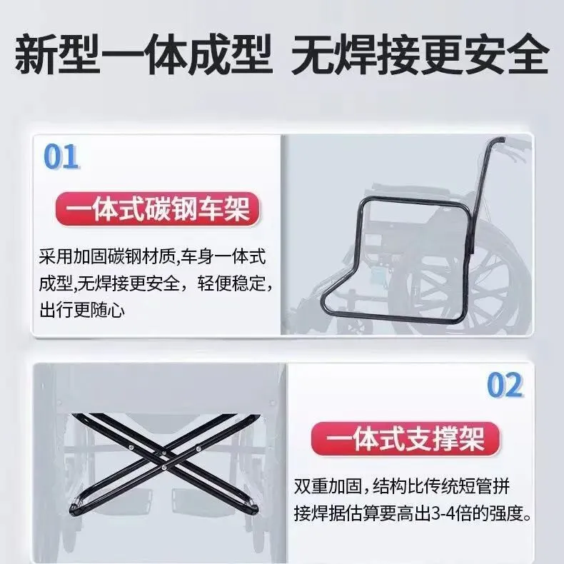 采用一体成型无焊接结构,不仅让车架整体强度大幅提升,还彻底避免了传统焊接轮椅焊点松动的风险,承重力与稳定性双优,行驶过程中给使用者满满的安全感。