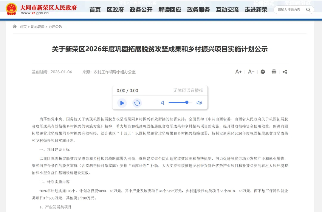 关于新荣区2026年度巩固拓展脱贫攻坚成果和乡村振兴项目实施计划公示