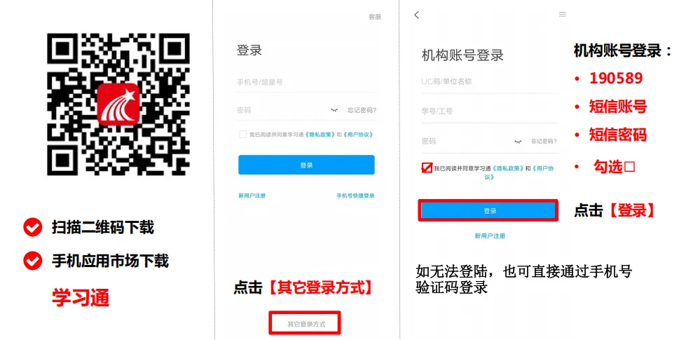 ②下载学习通,用注册时填写的手机号快捷登录,