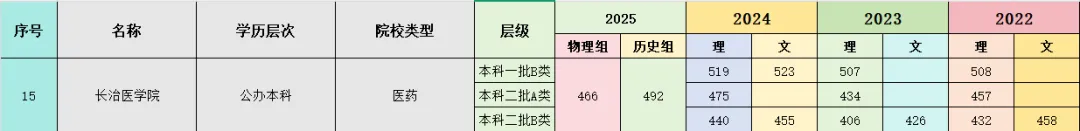 2025年,长治医学院物理专业组的院校投档线最低为466分,位次在本省排名86533。历史专业组的院校投档线最低为492,位次在本省排名22562。(下图为长治医学院2022-2025年院校最低投档线)