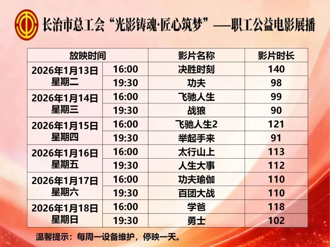 免费开放:无需报名,请携带身份证等有效证件直接前往现场观影(限120人/场,先到先得)。