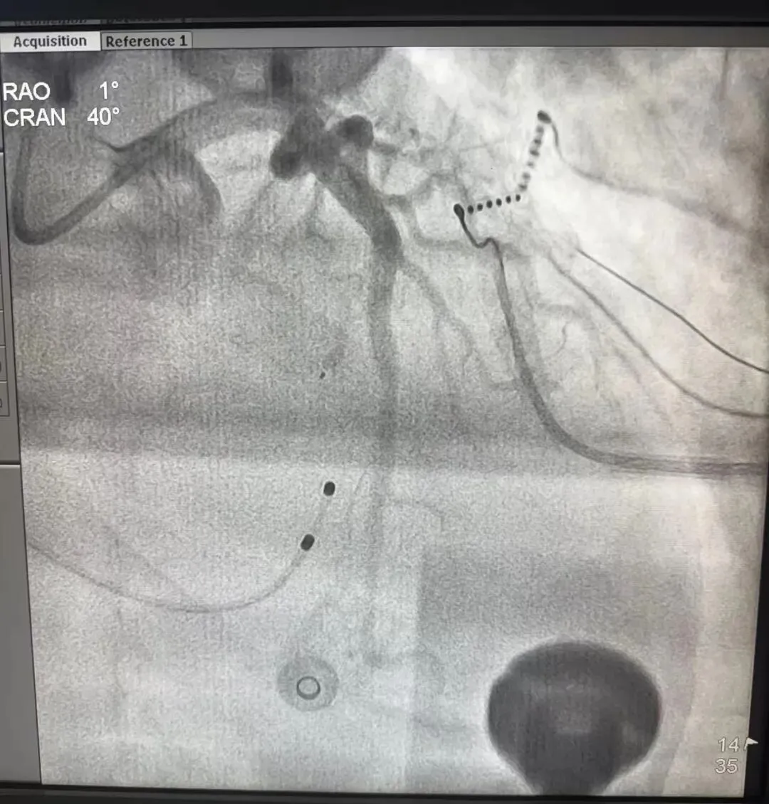 心血管内科主任王瑞华团队凭借丰富的经验和精湛的技术,通过冠状动脉造影精准定位,仔细评估患者的室间隔支血管条件,采用心肌声学造影,心腔内超声及三维标测,确定拟消融的间隔支动脉支配肥厚梗阻的基底部室间隔。根据室间隔支动脉的供血范围,精细操作,密切观察术中心电及压力变化,间隔支注入2ml无水酒精。