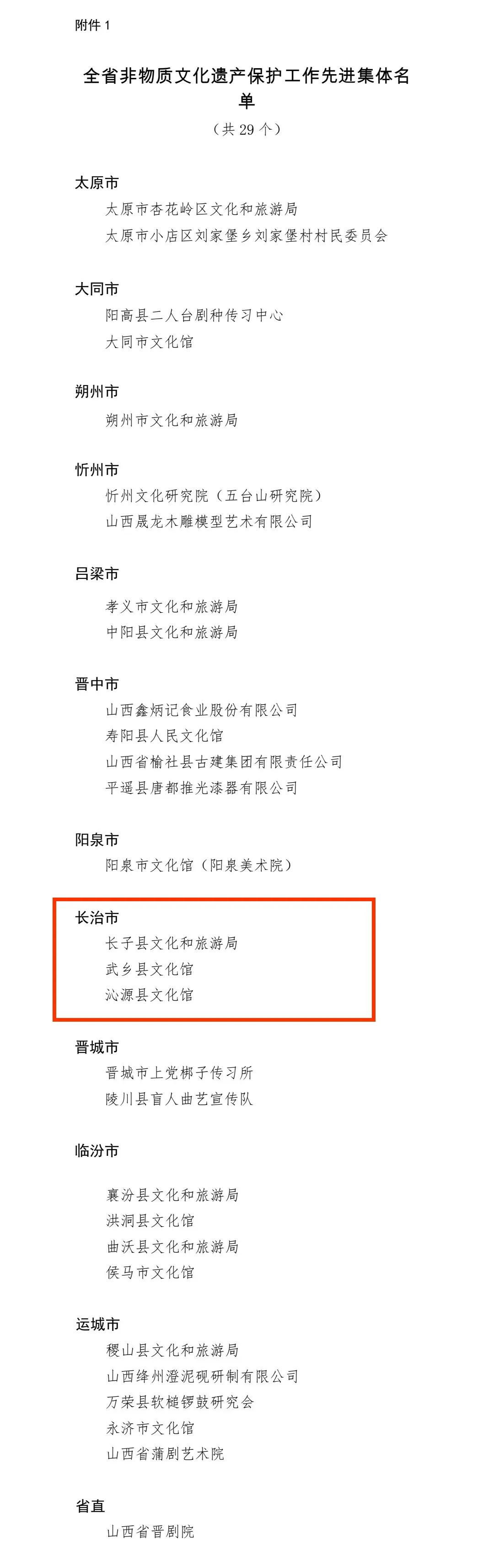 长治3个先进集体