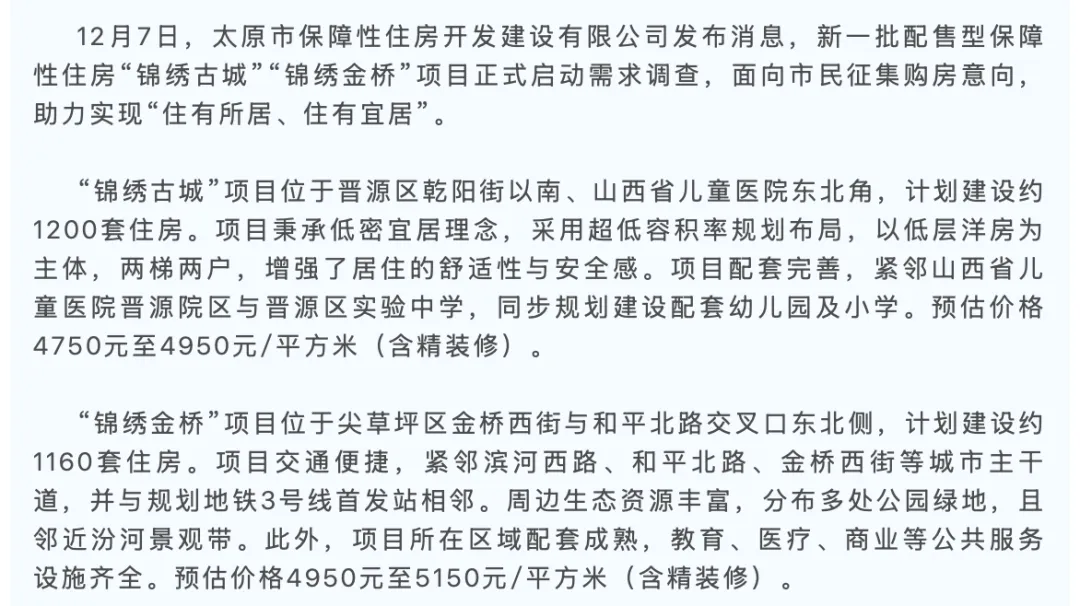 在2025年年末,除了龙城天瑞、金碧天下部分余量地块金碧未来两个立项之外,尖草坪三给区域和晋源儿童医院区域也有锦绣金桥和锦绣古城即将到来。