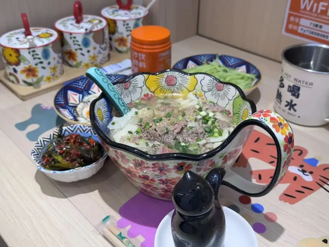 从门头到装饰,再到餐位上的小摆件,处处透着老板的用心,感觉每一样东西的背后都能讲出一大段故事!看得出老板是想营造出吃面就该有家的氛围感,哪怕是一人食,也不希望草草了事!