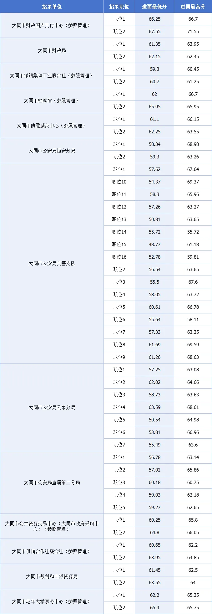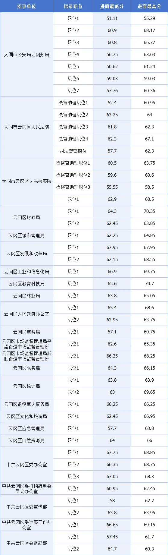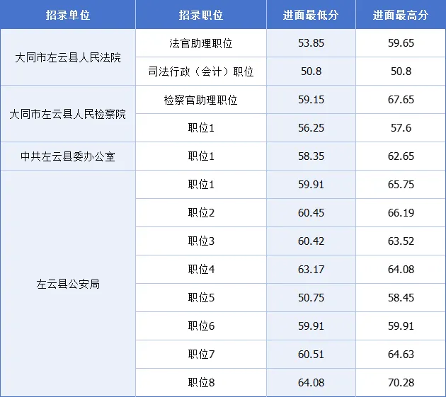 2025山西省大同市公务员考试最低进面分数参考汇总