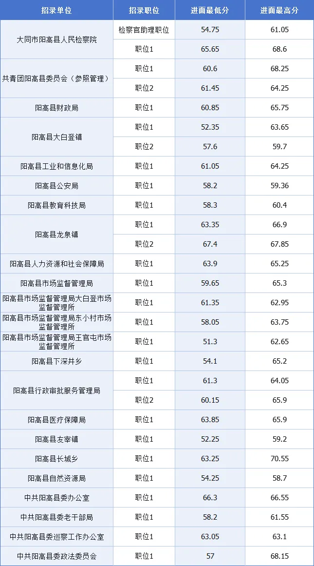 2025山西省大同阳高县公务员考试最低进面分数参考