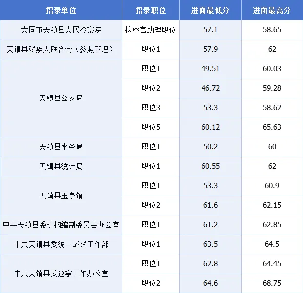 2025山西省大同天镇县公务员考试最低进面分数参考