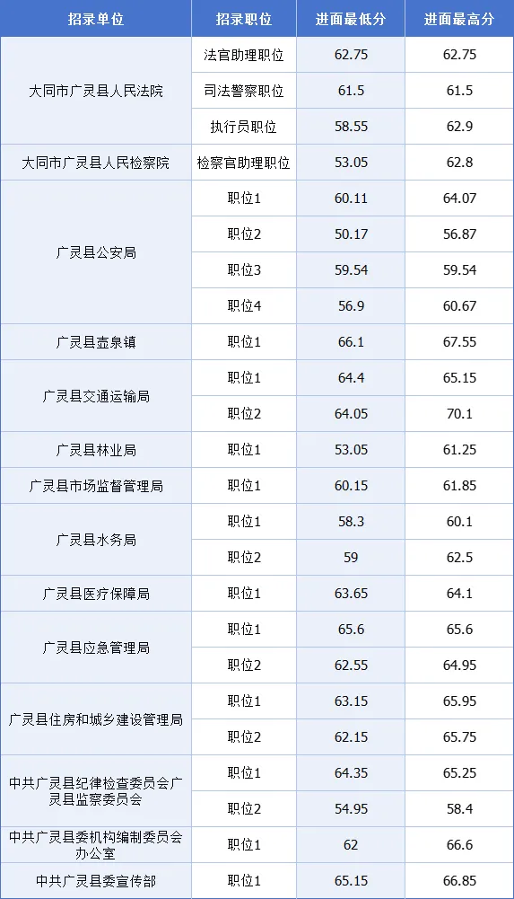 2025山西省大同广灵县公务员考试最低进面分数参考