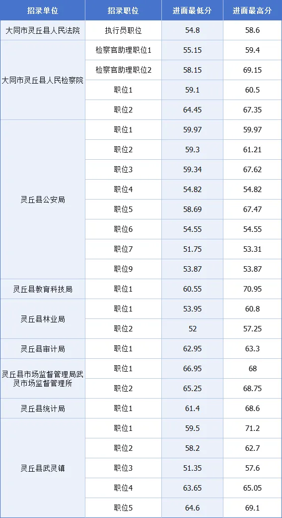 2025山西省大同灵丘县公务员考试最低进面分数参考