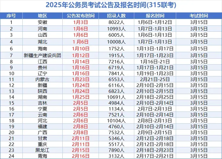 参考往年发布公告,多省公务员联考会在1月陆续发布公告。