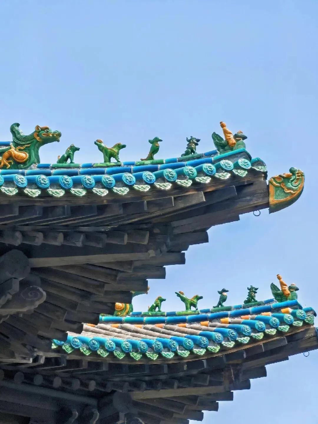 古城里还能看琉璃。明清的瓦件在屋檐上发光,绿里透黄。九龙壁在古城东街,明代藩王府前的照壁,一墙九龙,龙爪翻水,气势不小。看完再去小作坊聊两句,师傅说泥、说釉、说火候,真东西不怕看。