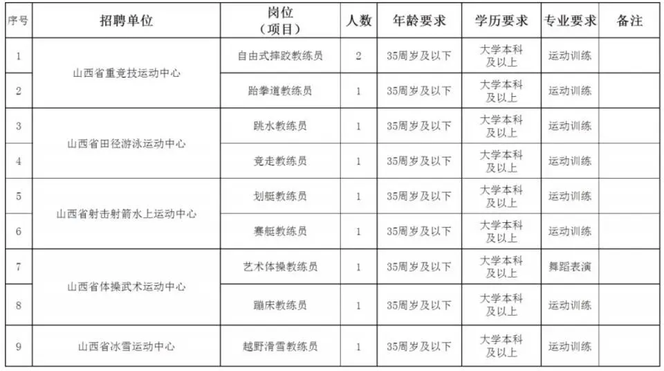 3、需要有六年以上运龄,获得招聘对应岗位项目全国三大赛前三名以上成绩的运动员或具有专业运动队执教经验三年以上,所带队员取得招聘对应岗位项目全国三大赛以上比赛录取名次。