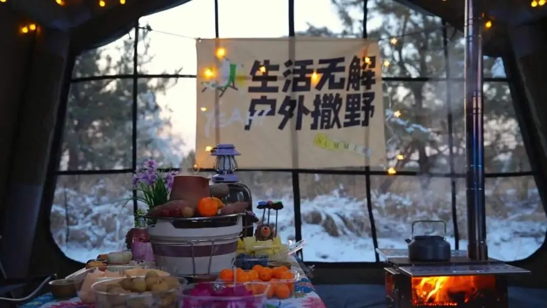在云州火山脚下,就能拥有这场冰与火交织的露营体验。趁雪未融、阳光正好,来这里与火山相拥,以铜锅暖身,用清茶润心,把冬日的美好都珍藏在这一方帐篷里。