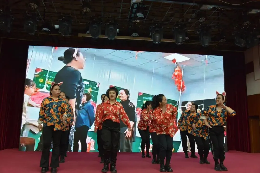 年会的舞台流光溢彩。舞姿翩翩,歌声悠扬,精彩节目应接不暇,大家在温情中纳福,在歌舞中迎春。