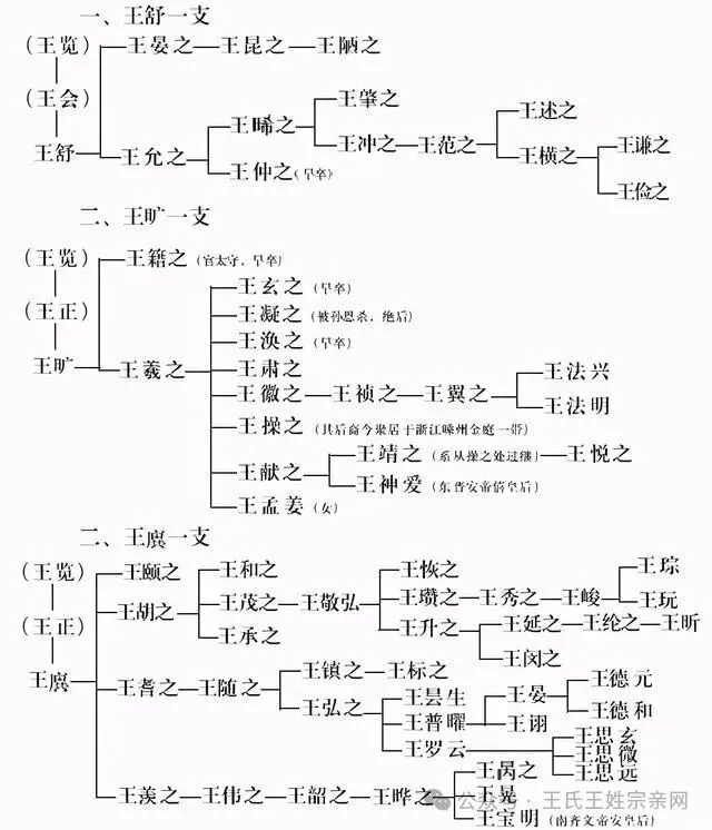 琅琊王氏王舒、王旷、王廙世系图
