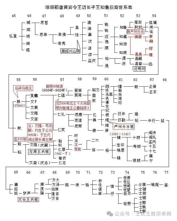 琅琊郡唐黄岩令王迈长子王知鲁后裔世系表