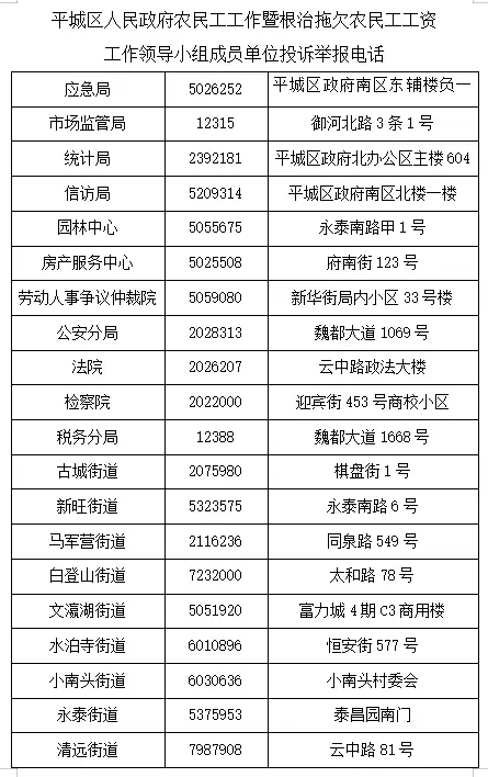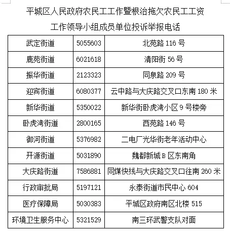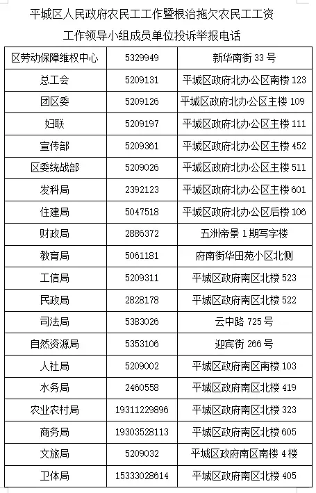 大同市平城区人民政府农民工工作暨