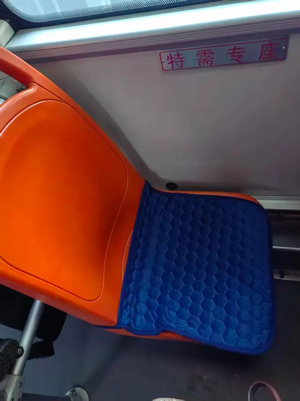 还以为是私人物品,赶紧环顾左右,没错公交的座椅升级了,全铺上了蓝色的棉垫子。还没坐了就感觉到了它的软和,不似以前的硬邦和冰凉。共交服务太贴心了,仿佛妈妈的关怀一样无微不至。在这寒冷的冬天里,这微小的关怀,让人觉得分外暖和,仿佛吃了一碗热腾腾的阳春面来得舒畅。
