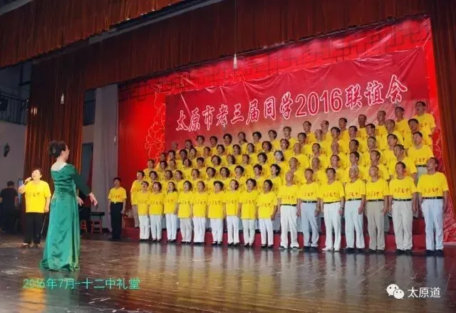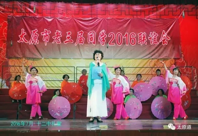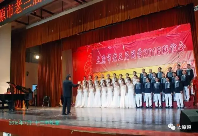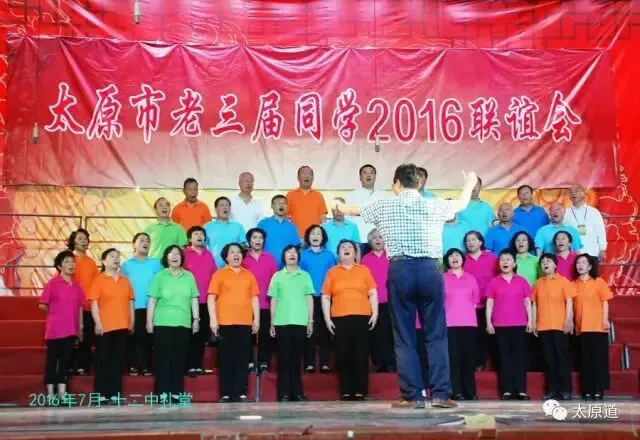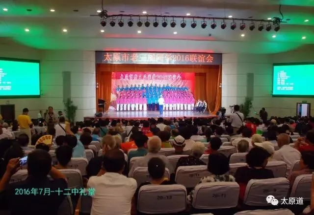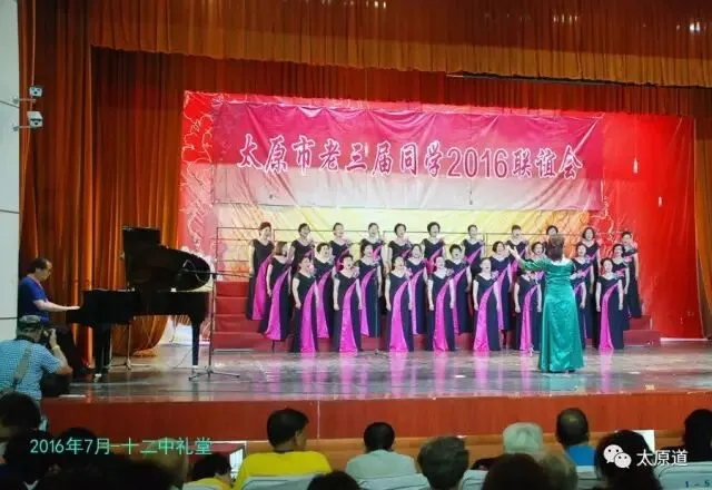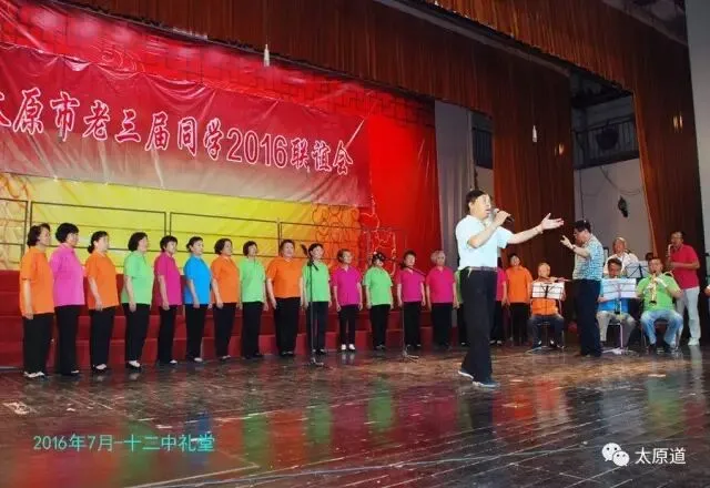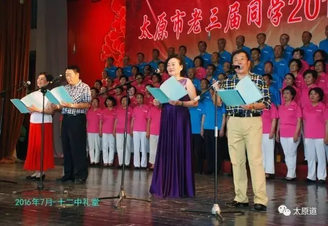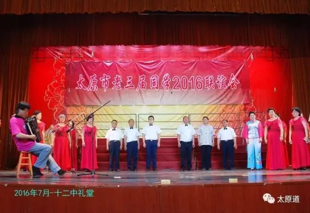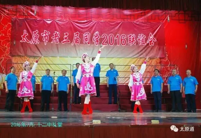 上午8时30分,六位主持人马振朝,张燕香,李玲,张友清,蒋言礼,洪林珠依次走上舞台。第一个节目是太原五中老三届的百人大合唱。由杜秉纯,徐秋月,马振朝,李福林先朗诵了原创诗歌《永远的老三届》,接着《我的祖国》那优美的旋律响彻整个礼堂,他们还演唱了《打靶归来》等经典歌曲。礼堂里爆发出第一次热烈的掌声。第二个节目是三中老三届的舞蹈《欢聚一堂》,热情、奔放,红绸翻飞的场景表达着一种积极向上的情感。演唱《天边骆驼》的是六中老三届林彦光同学,为这次演出,他特地从北京赶回太原,并承担了为多所学校手风琴伴奏的任务。“东西南北老三届”表演了女声合唱,这是一个来自不同学校老三届的组合。四中老三届王先兰等推出的是模特表演,阵容更加庞大,服饰更加艳丽。六中老三届还合唱了《桃花红,杏花白》,由蒋言礼指挥,据说演唱的是最新版本“大桃花”,展示了浓浓的山西民歌风味。