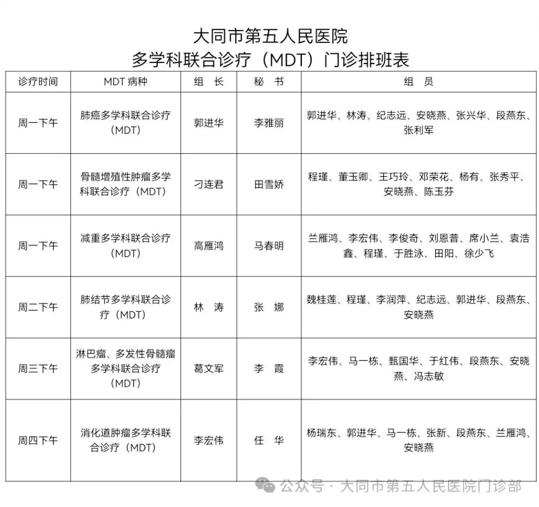 大同市第五人民医院“ 多学科联合诊疗(MDT)门诊”预约操作流程