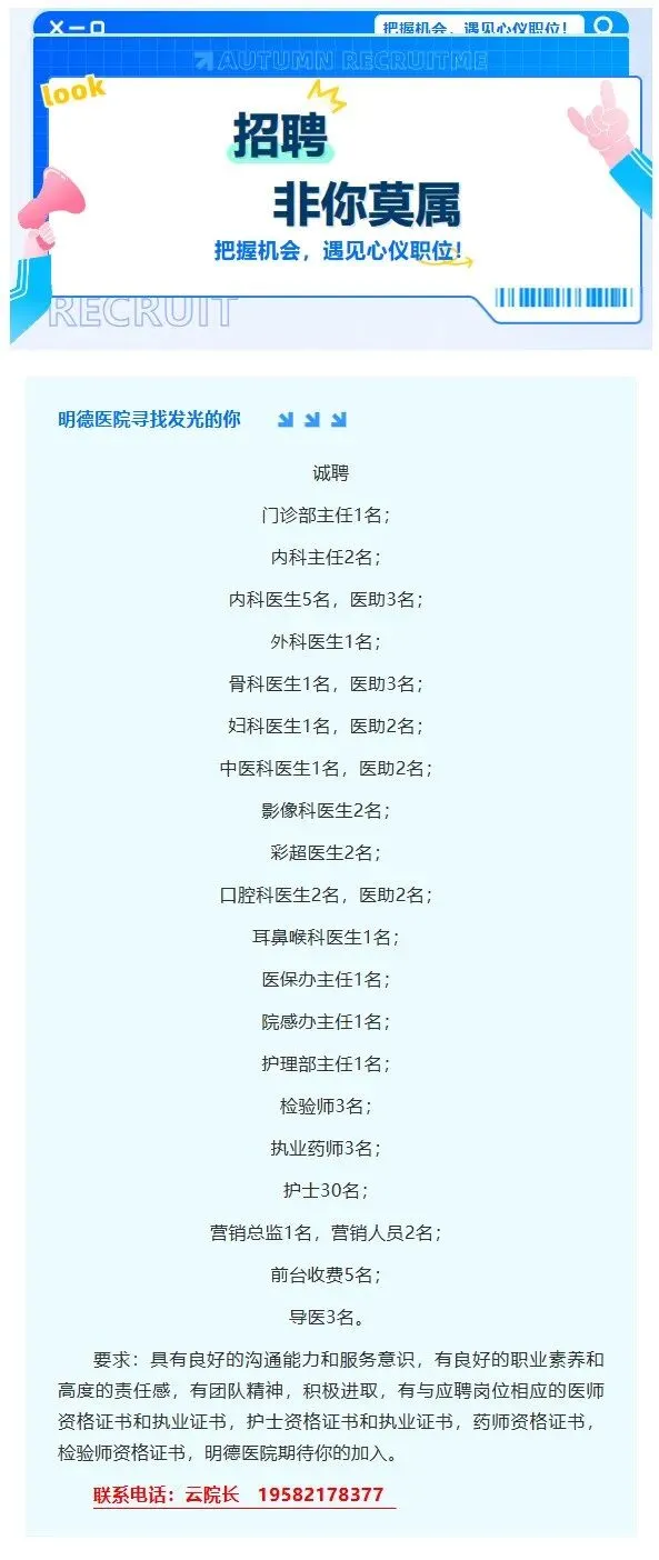 用人单位:阳高明德医院