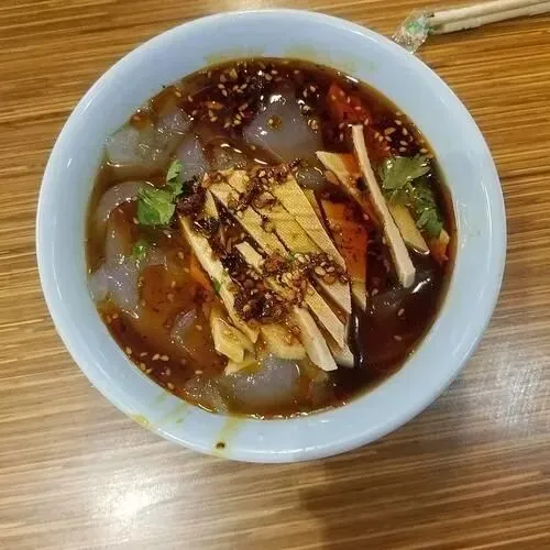 切成宽条盛碗里,浇上醋汤蒜水辣椒油,撒把黄瓜丝豆腐干。筷子夹起来抖抖,滑溜溜的直往下坠,赶紧往嘴里送。凉粉弹牙,咬下去嘣嘣响,酸辣味在舌头上炸开,吃完嘴唇都是麻的。5块钱一碗,站在街边呼噜呼噜就造完了,抹抹嘴走人。
