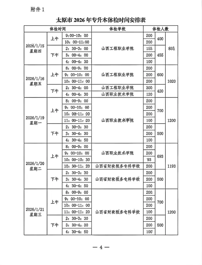 >太原市2026年专升本体检时间安排