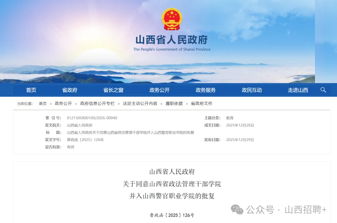 日前,山西省人民政府发布关于同意山西省政法管理干部学院并入山西警官职业学院的批复。