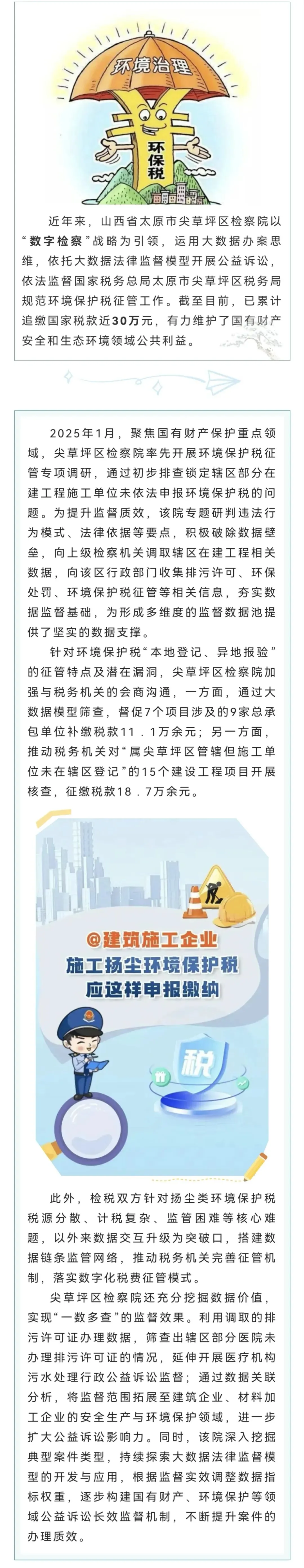 >太原市尖草坪区检察院通过“数字检察”追缴环保税近30万元