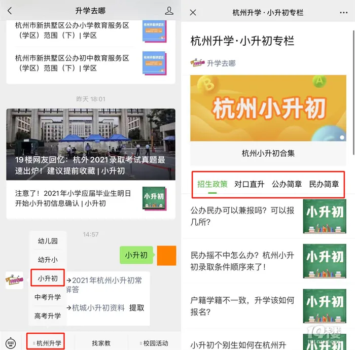 温馨提示:点击上方名片关注升学去哪微信公众号, 输入框回复【小升初】,查看2022年小升初常见问题及解答。或点击下方菜单栏“杭州升学”→“小升初”,查看招生政策、各城区初中对口小学、学校简章等信息。