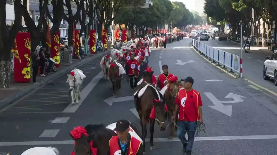 通过规范管理与多方宣传,“马队迎王”的价值被越来越多人所认识。2022年,“马队迎王”入选省级非物质文化遗产代表性项目名录。如今活动的规模日益扩大,巡游马匹过百,直接参与民众达万人。活动还融入了来自闽南各地的非遗项目队伍,声势浩大。