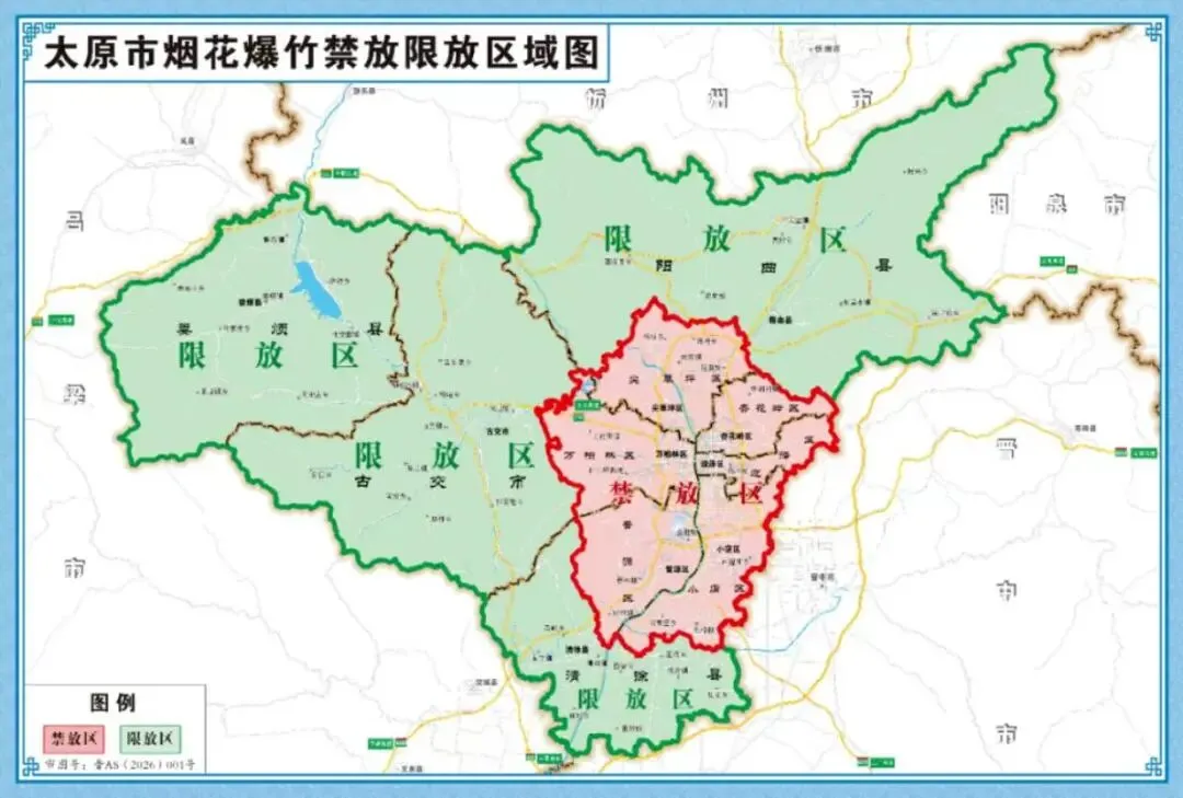 同时,太原市古交市、清徐县、阳曲县和娄烦县为限制燃放区域,区域内禁止或限制燃放烟花爆竹的范围、时间,由所在地县级人民政府规定,并向社会通告。