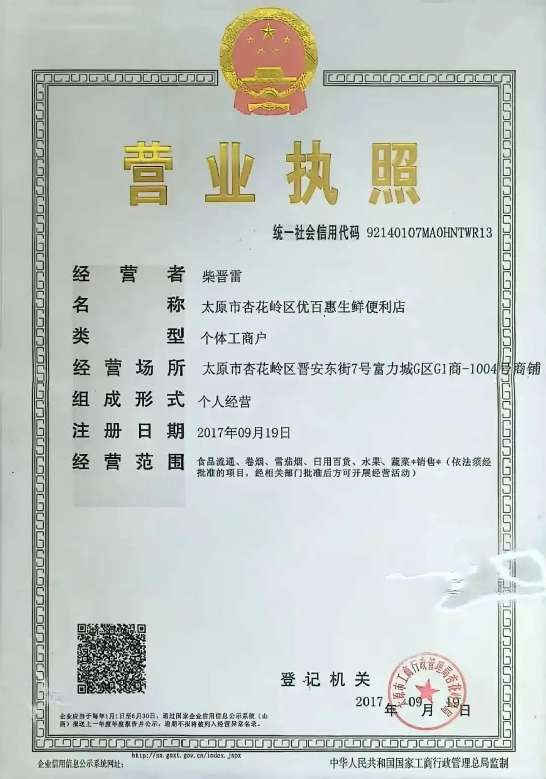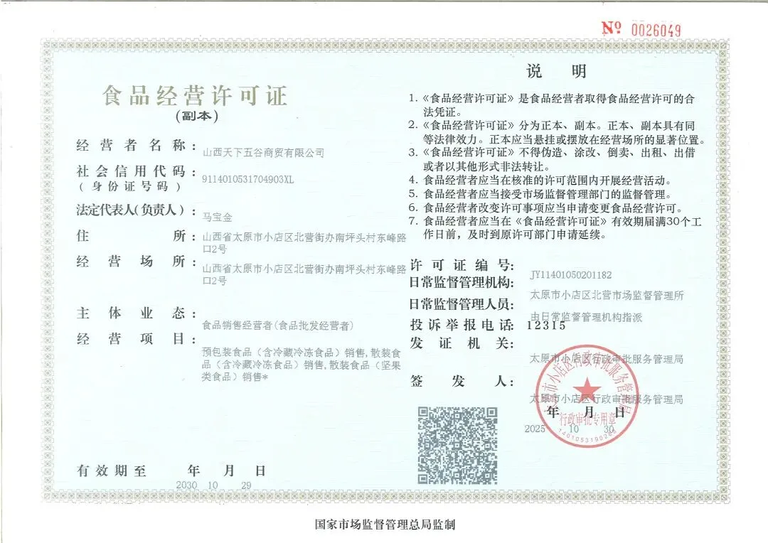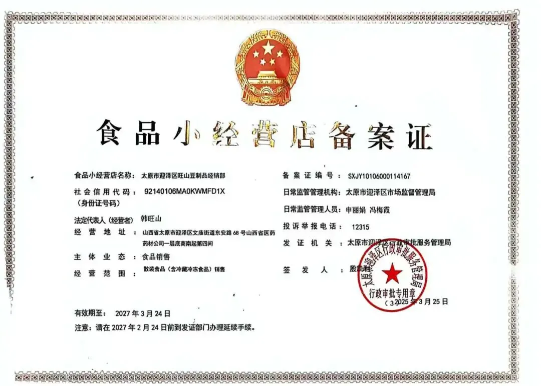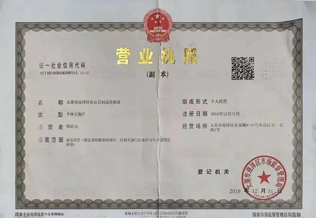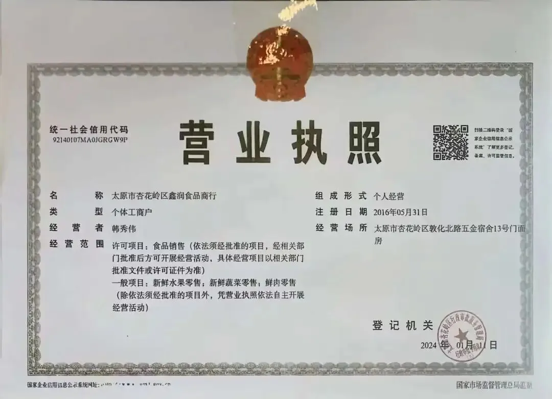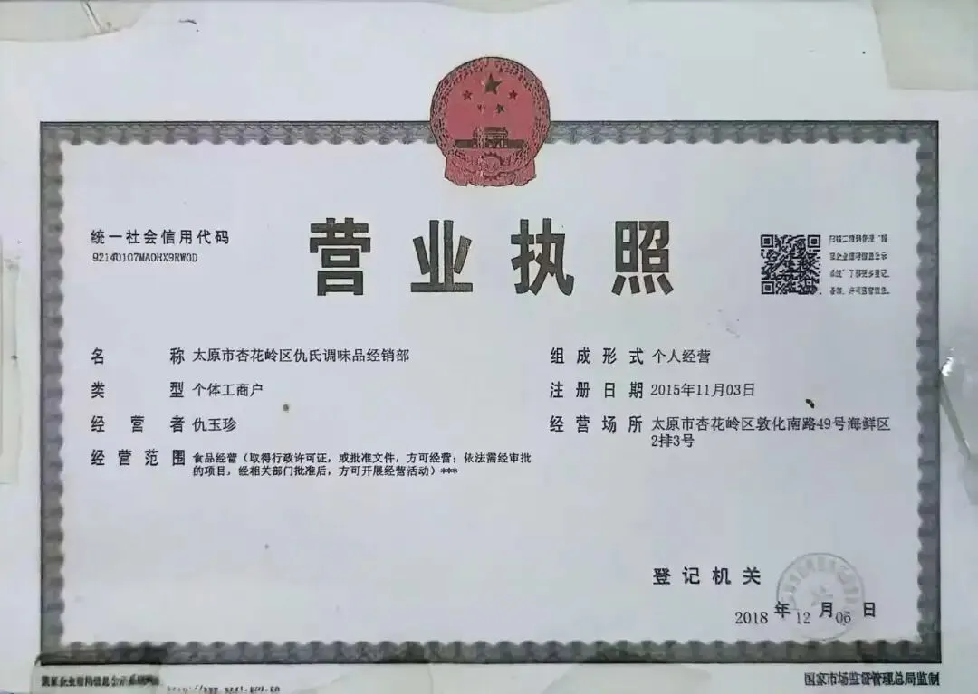 食材供应商营业执照、食品经营许可证