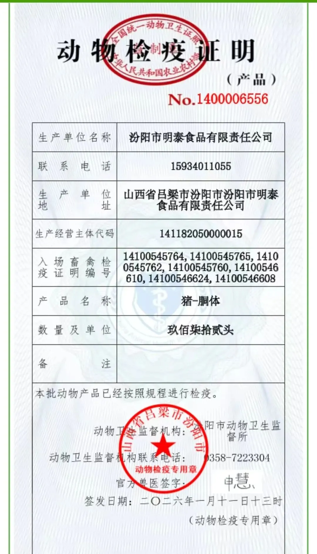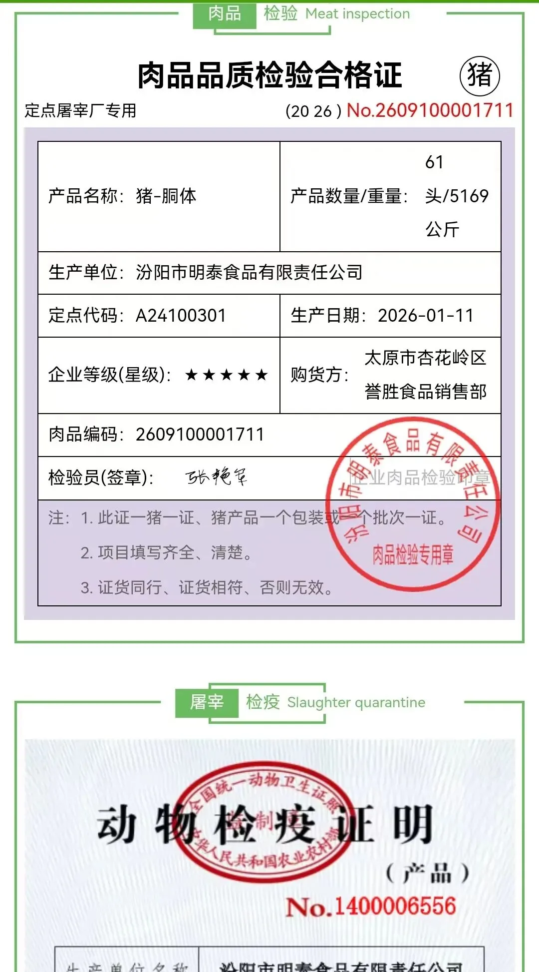 价格和检验检疫合格证明、批次检验报告