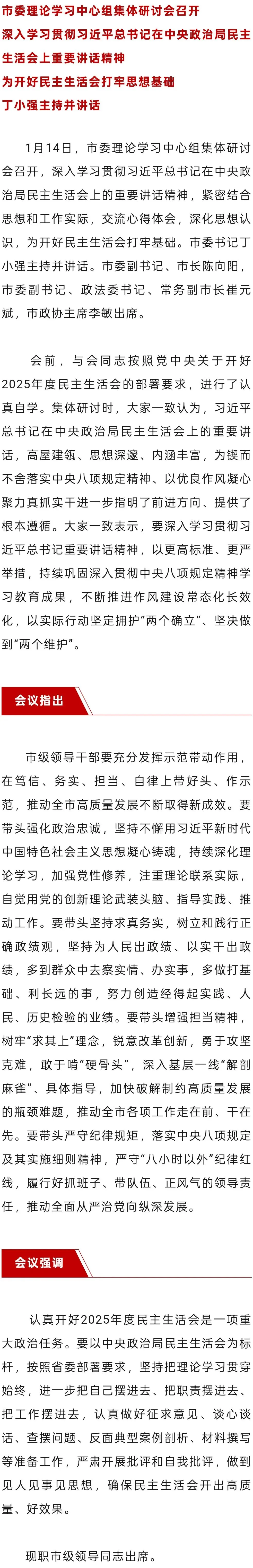 长治市委理论学习中心组集体研讨会召开