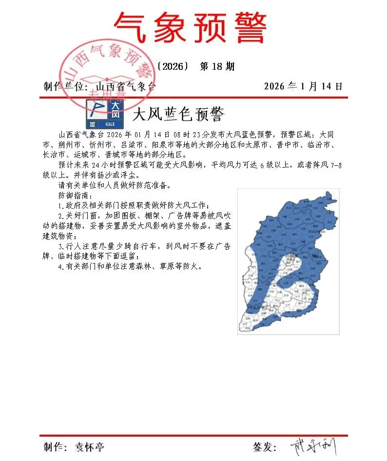 大风蓝色预警