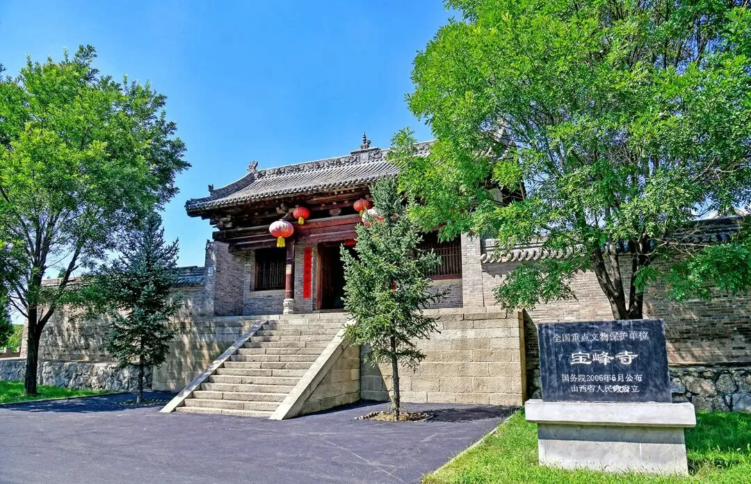 宝峰寺创建年代不详,据水陆殿板门后门盘题记记载:明成化五年(1469年)重修,现存建筑五方佛殿为元代遗构,其余皆为明代遗构。原三进院,现仅存一院。中轴线由南向北依次有水陆殿、五方佛殿,两侧有东厢房及西厢房基址。水陆殿石砌台基,面宽五间,进深六椽,单檐悬山顶,灰布筒板瓦屋面,柱头斗栱三踩单昂,明间设板门、次间置直棂窗。板门后门盘题记 “成化五年(1469年)闰二月五日造”,殿内山墙残存壁画17平方米。五方佛殿建于高0.8米的砖石台基之上,面阔五间,进深六椽,四椽栿压后乳栿用三柱,单檐悬山顶,灰板瓦屋面施琉璃脊兽,柱头斗栱五铺作双下昂,明间设板门、次间直棂窗;殿内佛像已毁,后壁残存彩塑背光壁画6平方米。