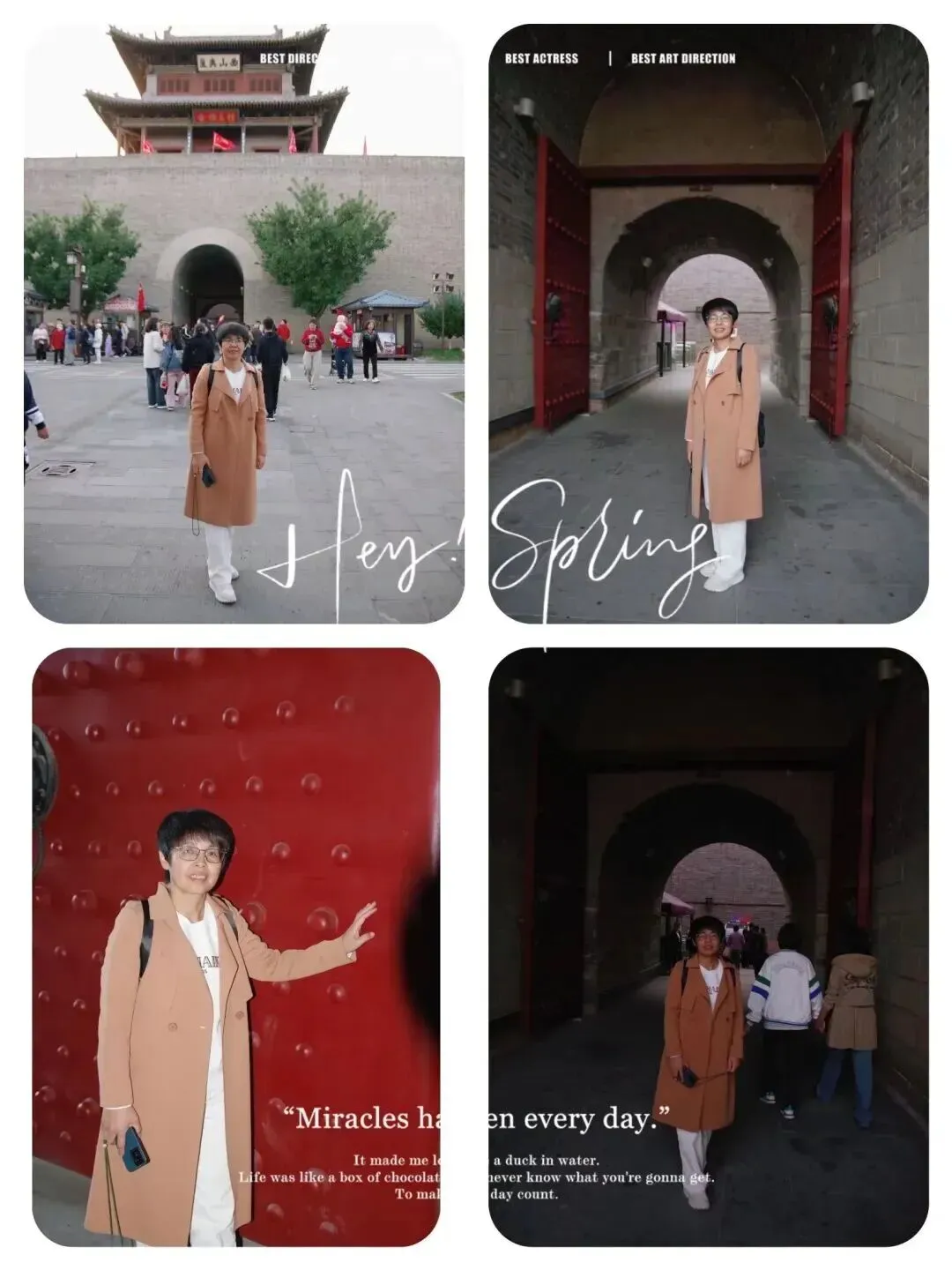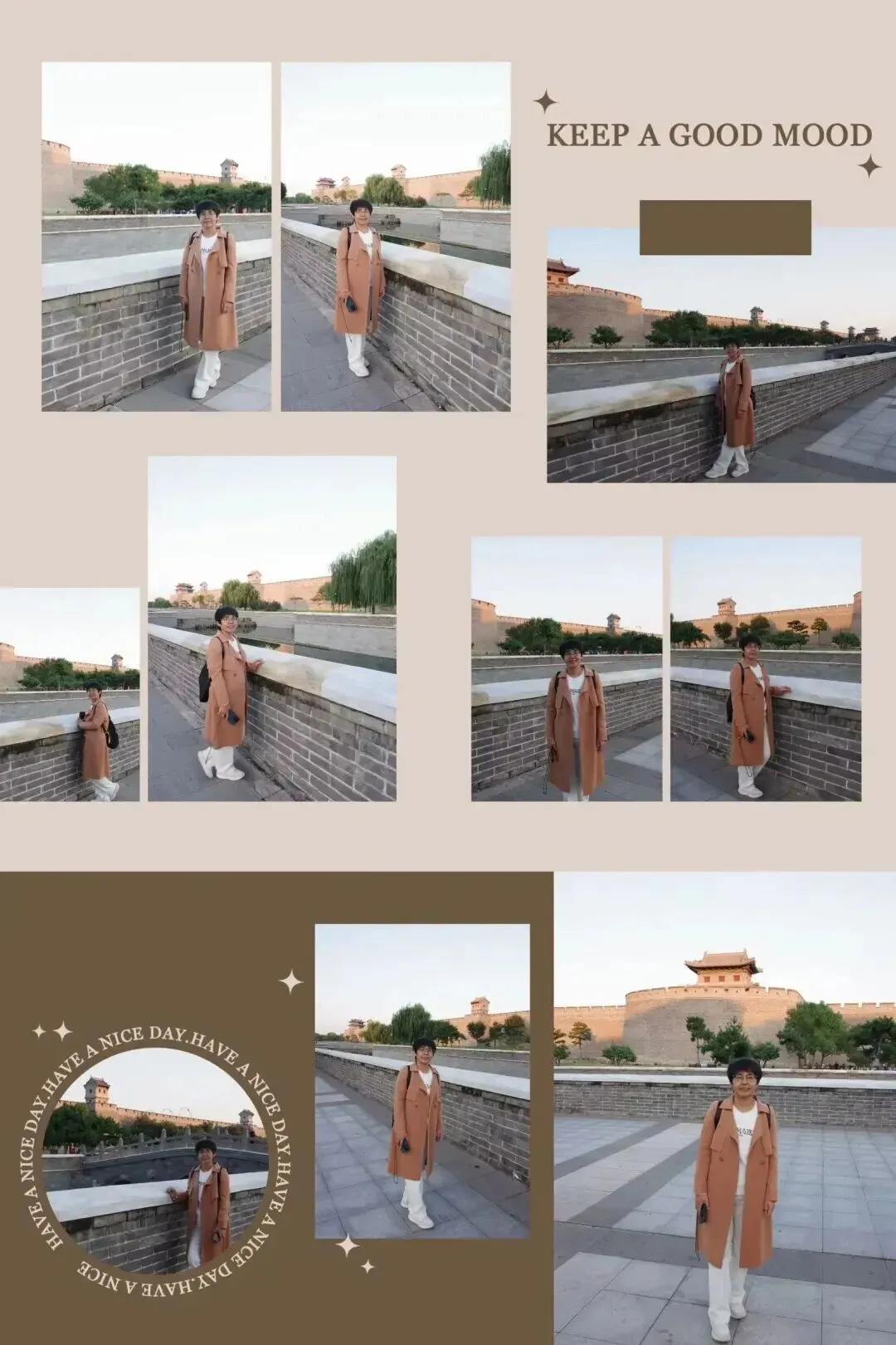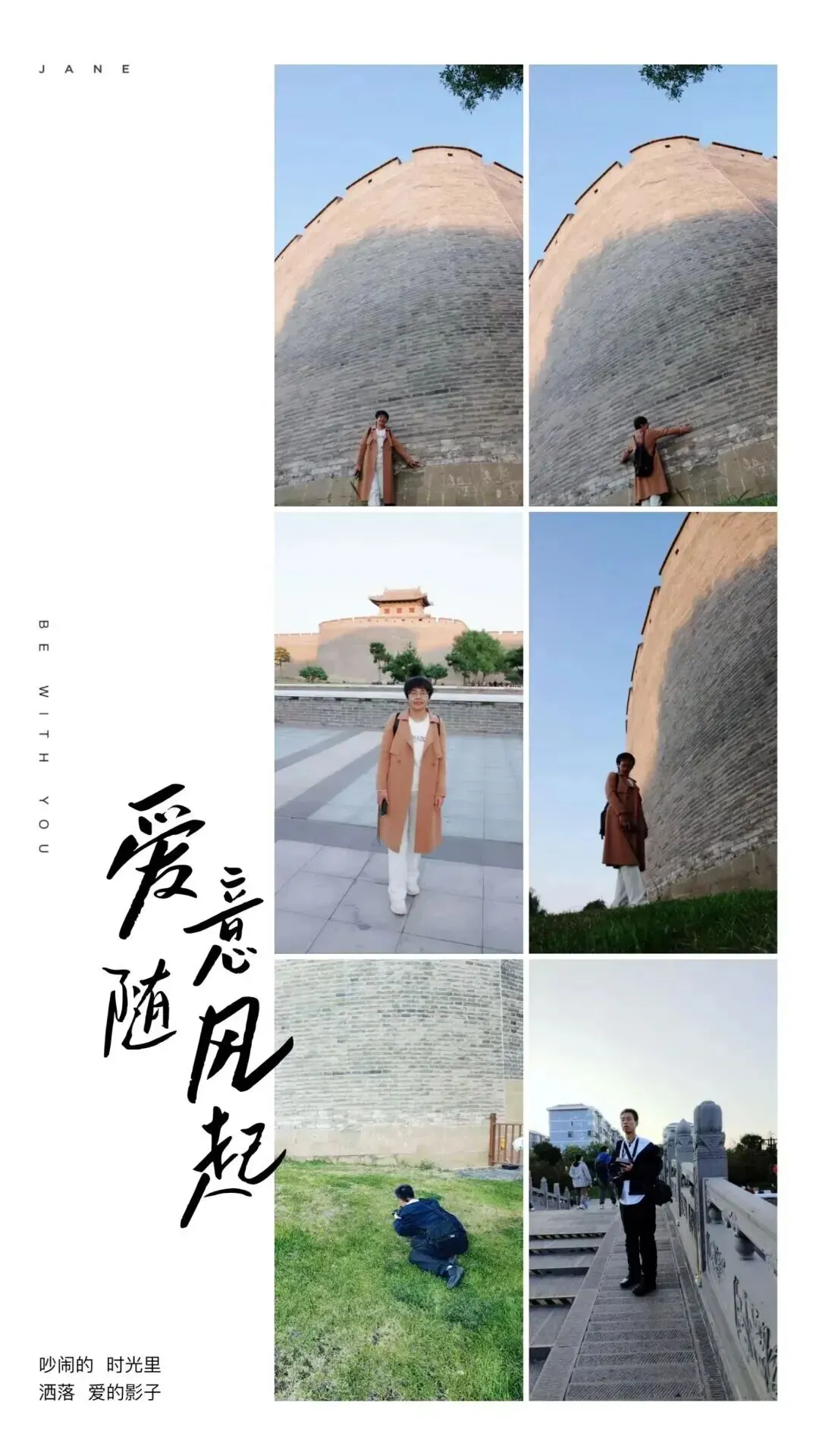 出了古县城,我们站在高高的城墙下仰望,厚重的砖墙承载着千年的岁月沧桑,让人不由得心生敬畏,我让先生帮我拍几张站在城墙下的照片,特意叮嘱他一定要把城墙的高大雄伟展现出来。没想到先生超级配合,为了找最佳角度,竟然直接趴在了草地上。我当时忍不住笑出了声,笑意里却满是温暖与感激。
